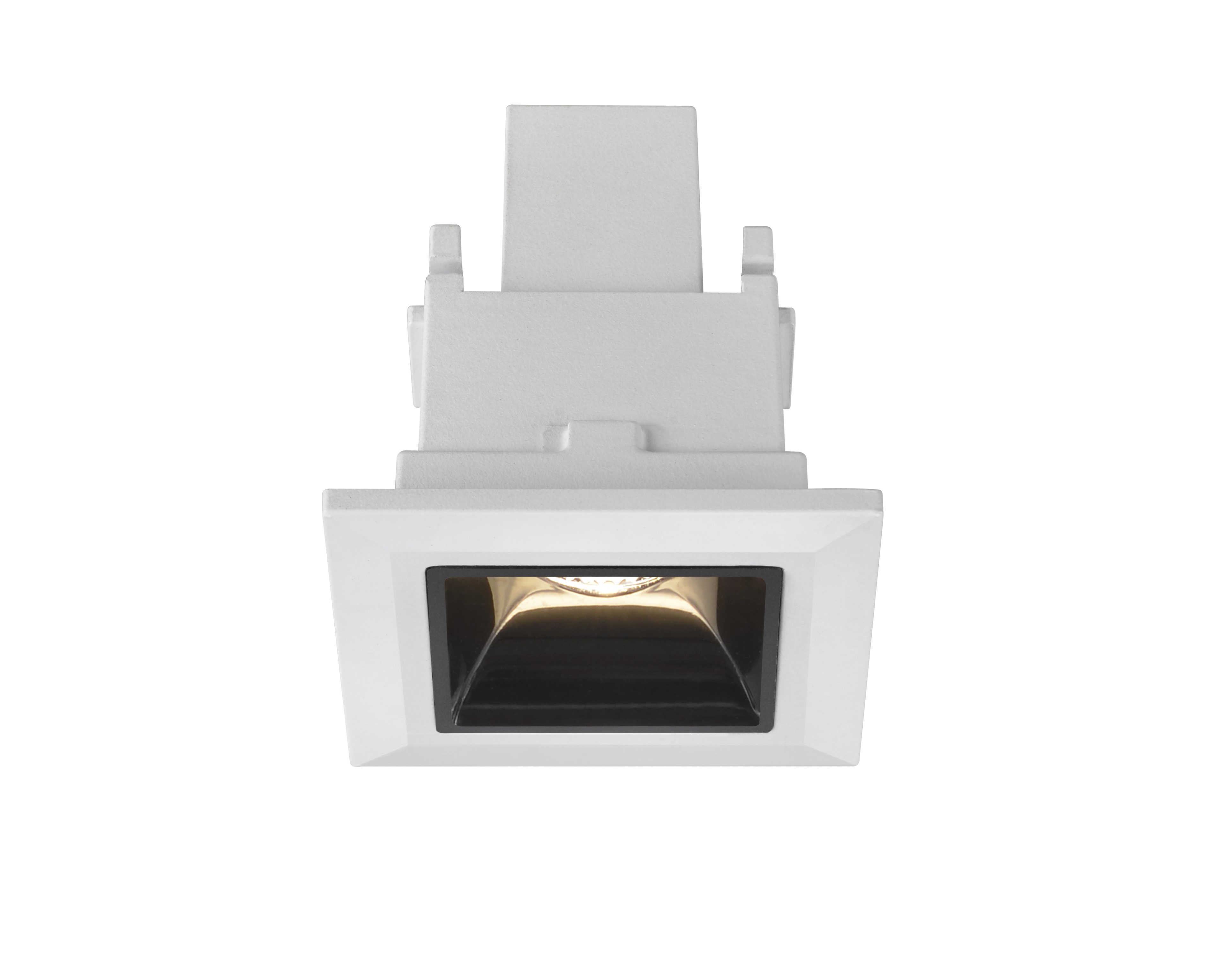 rectangular miniaturised recessed luminaire with 1 optical elements with LED lamps - fixed optics –Middle/Flood beam angle. Main body with die-cast aluminium radiant surface, version with perimeter surface frame. Metallised thermoplastic high definition optics,